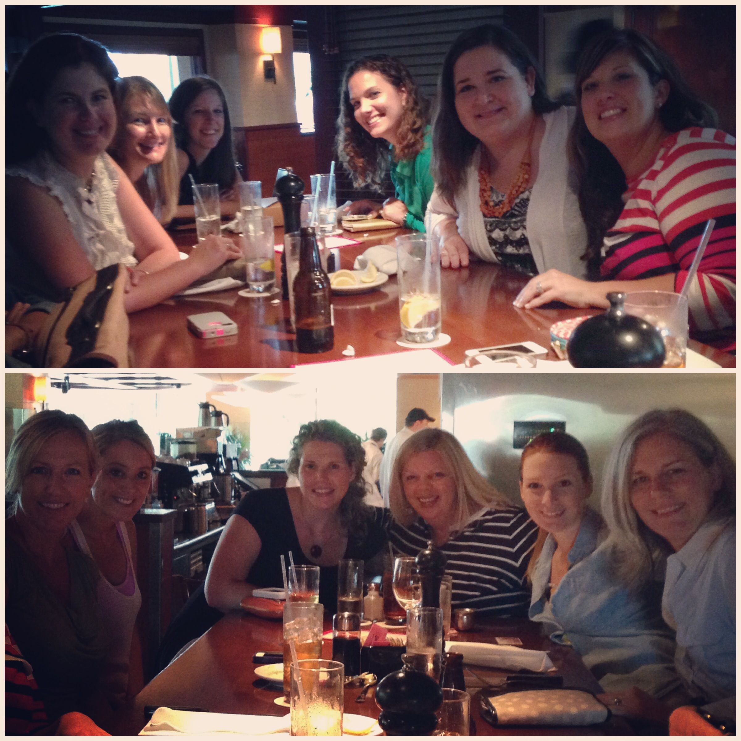 Ladies who lunch!  On one end of the table (top picture, L to R): Jennifer from Celebrating Everyday Life, Karah from The Space Between, Laura Beth from A Step in the Journey, Jessica from Decor Adventures, Beth from Unskinny Boppy, and Heather from At The Picket Fence.  On my end of the table (bottom pic, L to R): Kim from Sand & Sisal, Jessica from Four Generations One Roof, Chelsea from Two Twenty One, Kari from Thistlewood Farm, Me, and Gwen from The Bold Abode.
