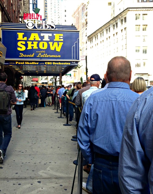 Our afternoon of Day 2 was spent primarily waiting on David Letterman.  (Diva.)  We stood in line to claim our tickets, stood in line to hear our instructions, and then went around the corner to The Three Monkeys Bar for a beer before having to come back and stand in line all over again.