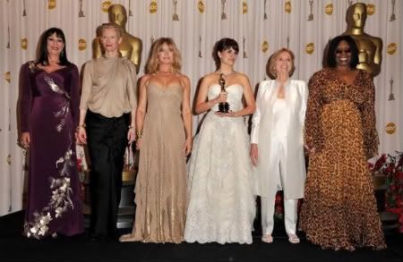 Without question, the biggest fashion offenders of the evening had the be the 5 former Best Supporting Actresses who awarded Penelope Cruz her Best Supporting Actress Oscar this year. For the first time ever I found these women painful to watch.