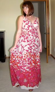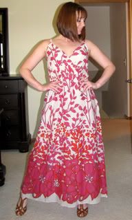Thanks for all your feedback everyone! I’m going to have to go with the overwhelming majority and return it. It’s a cute dress, but I just don’t think it’s for me. Like some of you said–if I don’t think it looks flattering on, I’ll never wear it. And I’m sure that’s exactly what would happen. It would sit in my closet and never leave the hanger. I’m also reminded of my friend Beth’s feedback when I considered purchasing a “but it’s SO COMFORTABLE!” dress last summer that could have doubled as a tent for a family of 4. She took one look at it and said, “You’re not shopping for pajamas. Take it off.” My point–I listen to good advice when I hear it. So long maxi dress!