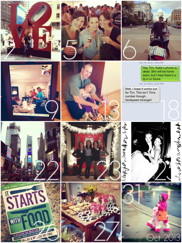 October 18: A much-coveted happy hour after work with my hilarious friend Katie (who just had her 2nd child). I don’t often include happy hours in my monthly photo recaps, but this one ended in a way that simply had to be documented for posterity. You see…Katie’s phone died somewhere around our 2nd margarita and although she had promised her husband Tim that she’d be home by 10pm, it was now 10:03 and we were still sitting on bar stools…so she used my phone to text him.